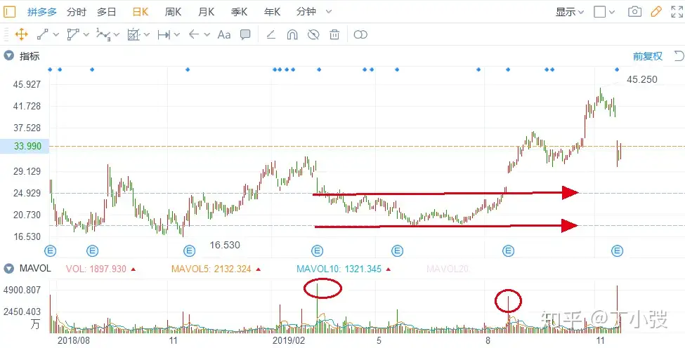 最后,我非常希望拼多多能多跌一点,跌到20-25这个箱体内,然后我进点货,买了之后,再越来越好,嘻嘻。