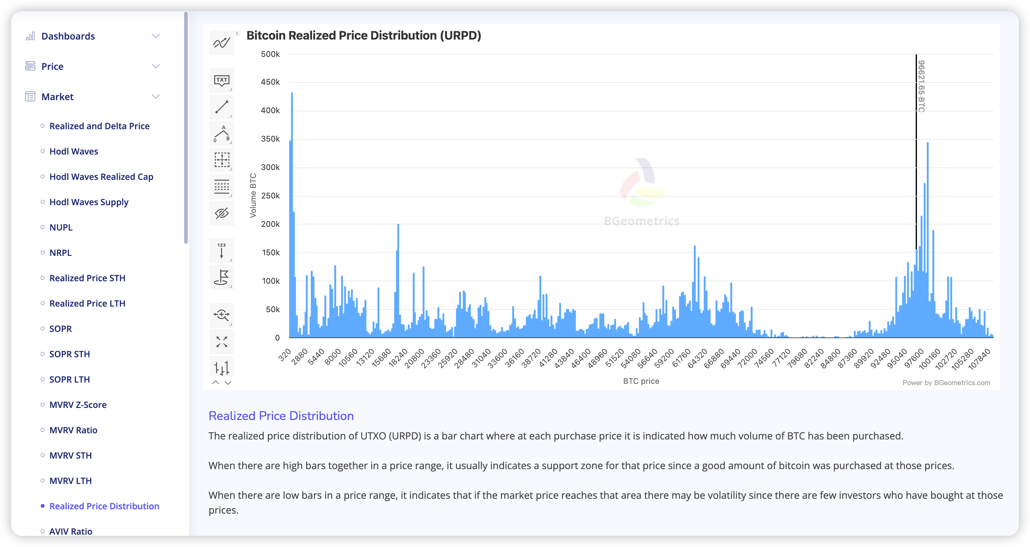 我主要通过 @BGeometrics 看比特币的链上情况(主要是因为免费)。这块也没啥好说的,每个指标代表不同的含义,自己研究就行了。我看的比较多的UPRD这个指标,