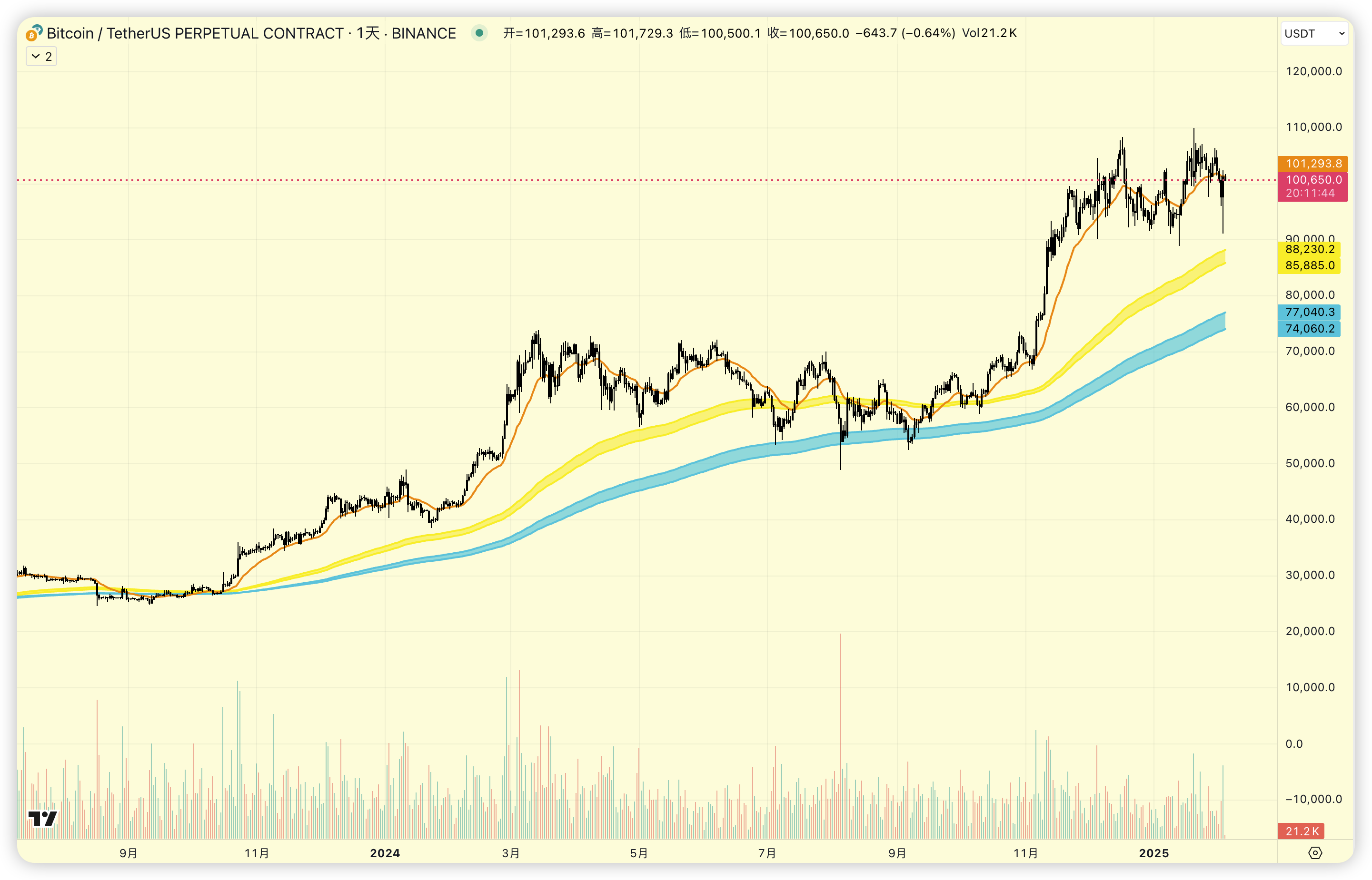 当前市场是个震荡市、牛市、还是熊市?价格在均线之上还是之下(每个人追踪的长期均线不一样,有些人是 ema200,有些人是 ema120)