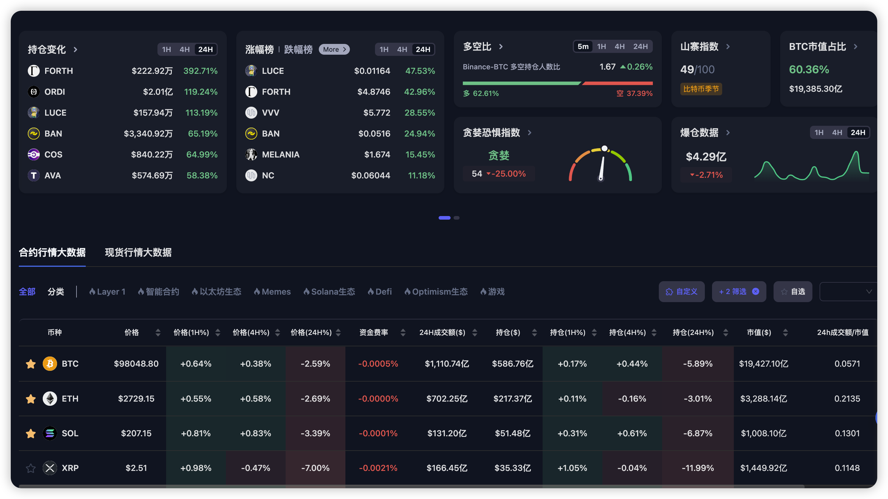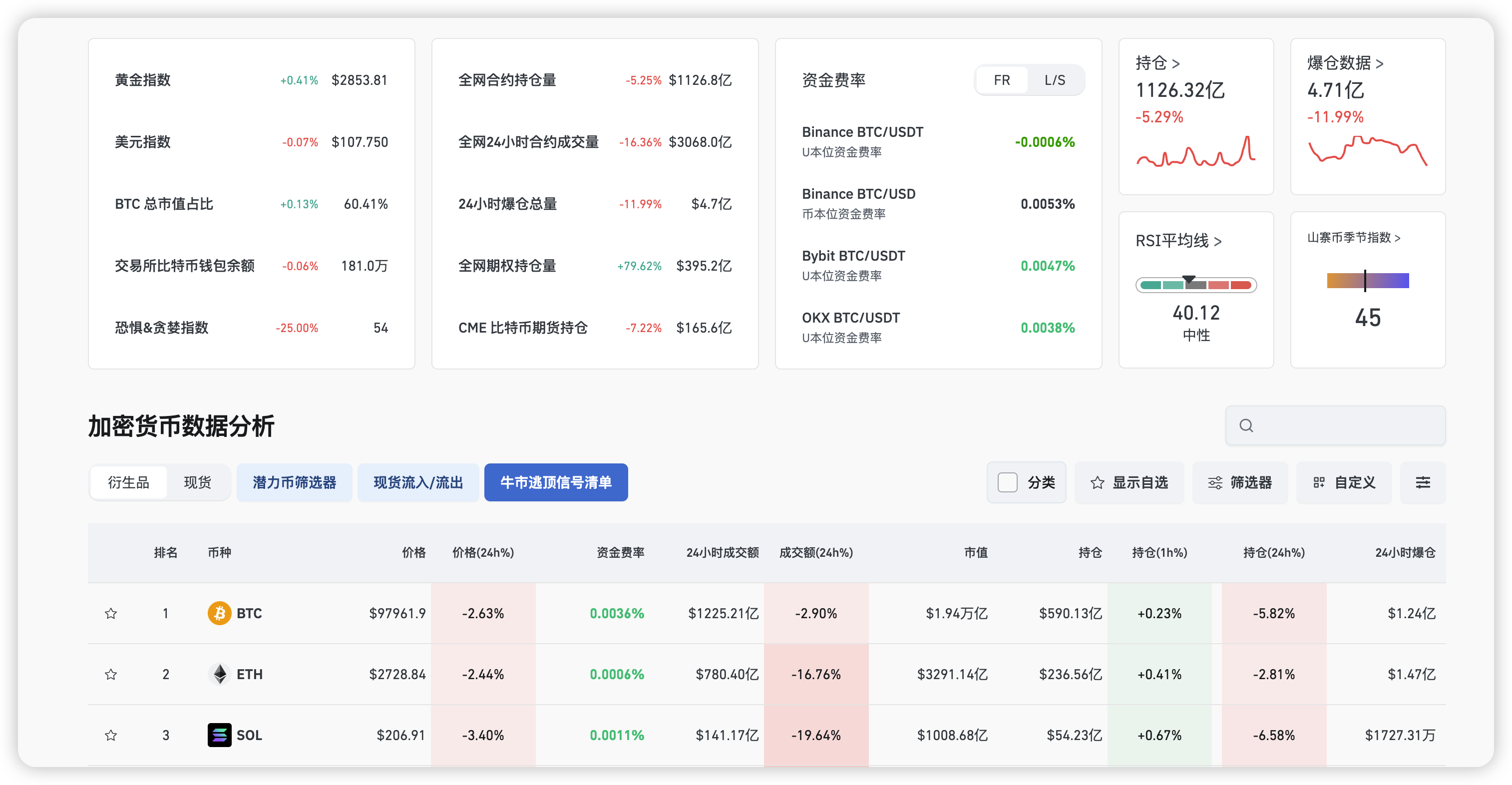 如果想看合约市场的情况,可以通过 coinglass 或 coinank 来看,比较简单,这里就不赘述了。