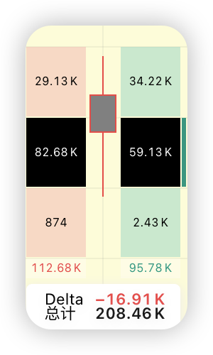 如果 delta>0,但 k 线是阴线,买单力量的背离,说明有很多挂单卖单(被动订单)消耗了买单,导致价格上不去。如果这样的话,如果要继续突破的话,需要更多的买单力量才能拿下这个价格区间。