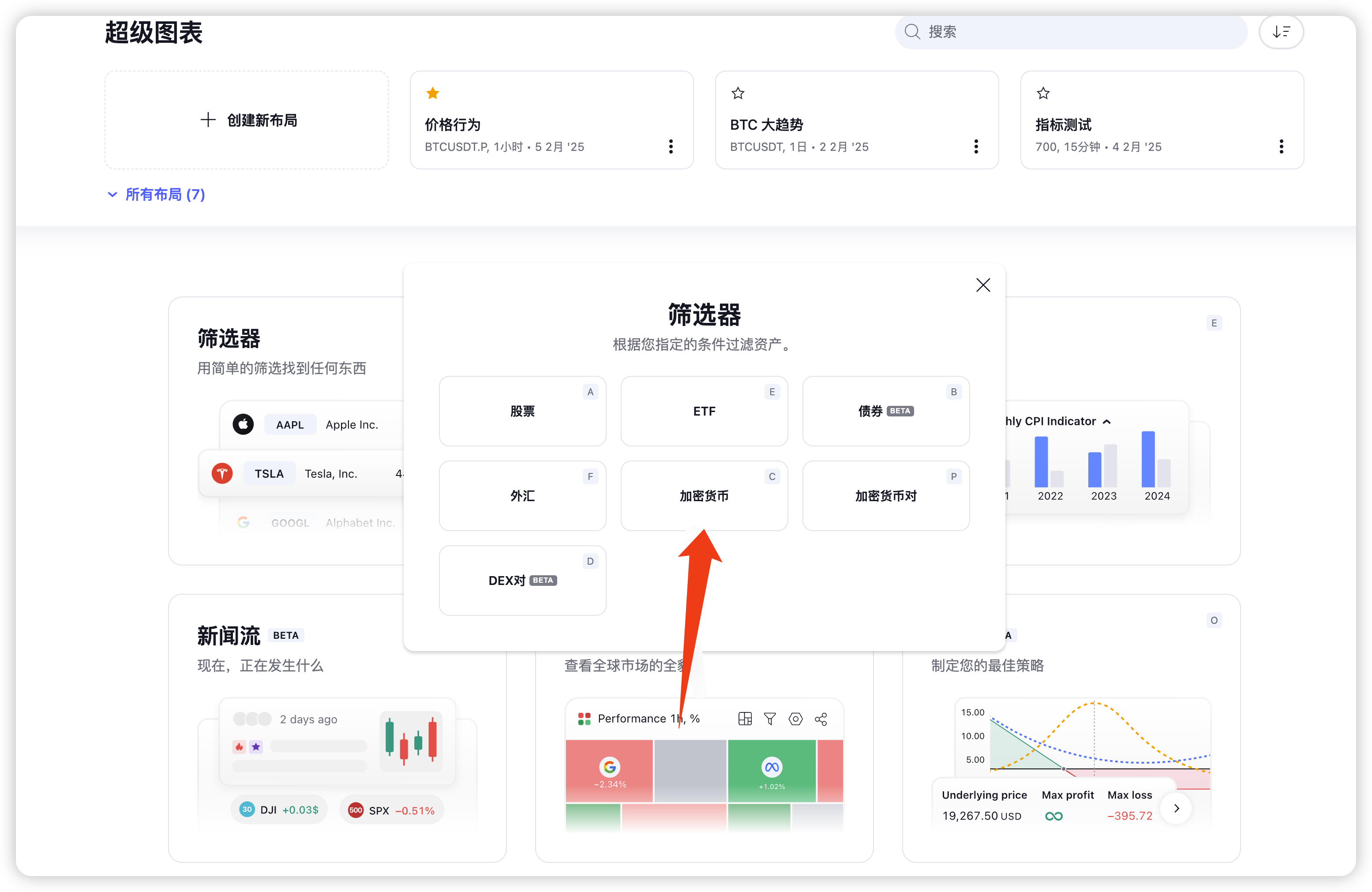 我用的 tradingview 的加密货币的筛选器,然后设置自己的筛选条件,他会每分钟自动更新。比如我就主要筛选 vegas 附近的情况,再看看具体情况是否值得买入。这样能省很多时间。
